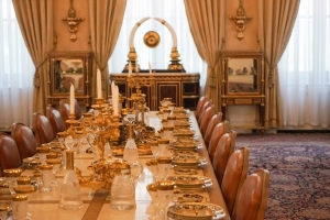 巴列維皇朝被宗教革命推翻後,其皇宮便被改為博物館。其中禮賓廳的裝飾和擺設均為歐洲風情,如沙發為路易十三至十六世時代的風格、瓷器產自法國、銅雕為義大利製造,還有許多歐洲名畫和中國裝飾品。