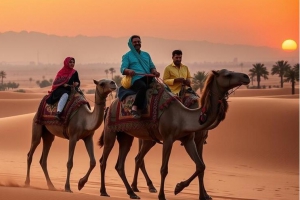 騎駱駝是體驗阿拉伯沙漠風情和文化的重要活動,通常由經驗豐富的嚮導帶領遊客騎乘駱駝穿越沙漠,感受「沙漠之舟」的獨特魅力。