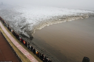 農曆每月初一至初三、十五至十八出現,而農曆八月十八的潮水最為壯觀。宋人范仲淹曾詩云:「海面雷霆聚,江心瀑布橫」。海寧鹽官鎮因有壯觀的「一線潮」而成為觀看錢塘江大潮的最佳地點。