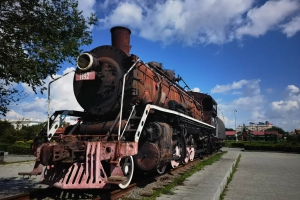 廣場內的火車頭是1940年的日制蒸汽機車頭,下面的鐵軌是1925年蘇聯製造的43鐵軌,所說的43鐵軌,是因為它每一延長米是43公斤而得名。