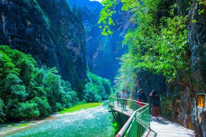 是國家5A景區、國家地質公園,素有“人間仙境”之稱。景區以獨特的火山流紋岩地貌著稱,是世界上規模最大的火山流紋岩地貌集群,奇峰險崖、絕壁天坑、流泉飛瀑、雲海霧濤交相輝映,形成“觀音、如來、天姥峰、雲海、飛瀑、蝌蚪文”六大奇觀。
