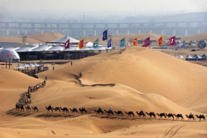 中國最大的沙漠旅遊休閒度假地,內蒙古自治區僅有的兩個5A級旅遊景區之一,以「這裡的沙子會唱歌」而聞名。人們在沙漠裡建造出令人流連忘返的旅遊度假天堂,餐飲、住宿、娛樂休閒一應俱全。