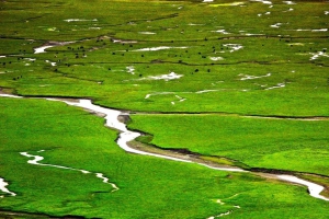 是黃河首曲最大的生態濕地之一,海拔在3400米至3700米之間。這裏水瀉不暢,形成眾多汊河和沼澤,河流蜿蜒,沼澤星羅棋佈,在陽光下如銀色絲帶,與草原、雪山、黃河相互映襯,兼具陽剛與陰柔之美。