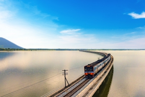 一年僅有冬季3個月的週末開放的水上列車,往返於曼谷與華富里之間,由於甫過雨季,水位高漲,行駛於大壩上的列車宛如於水上奔馳,故得到漂浮列車的美名。從兩側車窗遠眺群山,平穩行進於水壩中廣袤湖泊的景色,彷彿是在無垠大海中破浪前進,令人永生難忘。