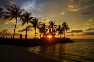 丹絨亞路海灘位於亞庇市區西側,海灘上種有成排成列的棕櫚樹及木麻黃樹。這裡的夕陽甚至被譽為世界三大最美日落之一。