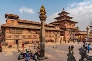 廣場周遭寺廟林立,大大小小共有兩百多座,馬拉王朝鼎盛時期,金屬塑像成為主要的雕塑藝術形式,重要的寺廟都加了金汞合金的屋頂,金屬工藝達到了相當高的程度。此時期建造的金廟主要集中于巴丹,也充分顯示了這些金屬工匠們的高超藝術。