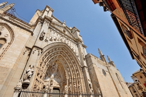 為安置聖雅各之墓而興建,經過回教徒的破壞與天主教徒的重建,羅馬式結構的宏偉建築,映入眼簾的是繁複雕飾的巴洛克立面與雙塔,進入正門可見超過200尊雕像的3扇拱門「榮耀之門」迎接結束長途旅程的朝聖者,通過此門眼前出現峨巍的內部。