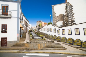 小鎮位於大加納利島北部,溝壑、井水、河道中湧出的豐富泉水,在其歷史和經濟發展中留下了深刻的印記,長久以「水之村」的別稱而聞名,◎大加納利大道的徒步台階以30公尺長的人工瀑布妝點,以賽維亞燒製的彩繪瓷磚繪出島上鄉鎮的紋章盾徽。