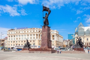 革命戰士廣場上有俄羅斯遠東地區最大的戰士紀念碑,紀念1917年二月革命和七月革命,海參崴的布爾什維克聯合國內外反動勢力進行堅苦卓絕的鬥爭,用鮮血和生命贏得了最後勝利的英勇戰士們。