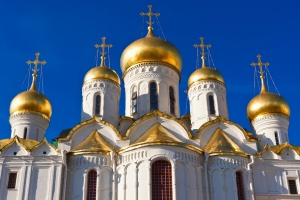 建於1164年,莫斯科克里姆林宮的聖母升天教堂即是以此為藍本,1475年伊凡三世興建石造教堂代替舊有的木造建築,成為古俄羅斯建築典範,所存的壁畫及聖像畫更是宗教藝術史的珍寶。並立的◎聖德米特里教堂正面雕滿動植物及山川河流的圖案,美不勝收。