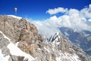 楚格峰是韋特施泰因山脈最東邊的山峰,也是德國第一高峰,海拔2,962公尺,位於巴伐利亞州與奧地利的邊界,是阿爾卑斯山脈的一部分。搭乘纜車或火車登上山峰,沿途風景秀麗,放眼望去,盡是壯麗的冰河,起伏的山峰,令人不禁讚嘆大自然的鬼斧神工。