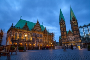 布萊梅市政廳是歐洲神聖羅馬帝國發展公民權益的象徵。它建於 1405 年至 1409 年之間。大約兩個世紀後,布萊梅建築大師 Lüder von Bentheim 為這座哥特式建築賦予了新的外觀。