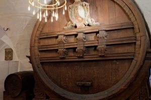 海德堡城堡的深處是世界上最大的葡萄酒桶。海德堡屯或Grosses Fass擁有超過22萬升(58,000美製加侖),高六米高。酒桶的對面是意大利人Perkeo的雕像。作為一個矮人和奇怪的娛樂人物,他被任命為屯門的法庭小丑和守護者。