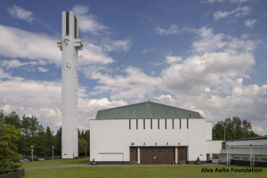 最顯著的特色是高達65 公尺的鐘樓,其橫切面呈獨特的十字形,讓這座巨大白色地標在平坦的芬蘭平原上極具視覺震撼力。室內亦大量留白,僅透過高處窗戶引入自然光,營造出靜謐莊嚴的氛圍。