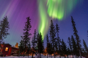 極光(Aurora Borealis)是北極地區夜空中綻放的自然奇景,由太陽風與地球磁場互動所產生的壯麗光芒。綠色、紫色或紅色的光帶在星空下舞動,如夢似幻。每年冬季,是前往芬蘭、挪威、瑞典等地追尋極光的最佳時機,是一生必看的絕美景象。