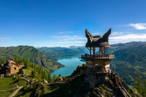 位於新疆布爾津喀納斯景區內,建於海拔2030米的哈拉開特(蒙古語意為「駱駝峰」)山頂上,與湖面的垂直落差達600多米,因處於觀察「湖怪」的最佳位置,故得名觀魚亭。觀魚亭是喀納斯景點中的極品,是唯一一個能駐足飽覽喀納斯美景的最佳平臺。