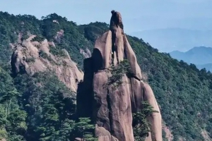 老道拜月是花崗岩峰林地貌景觀,山體形似一位肅立的老道遙拜蒼穹,被列為三清山「十大絕景」之一。其主體由約14億年前地質演化形成的花崗岩構成,經風化侵蝕後呈現出擬人化的造型。