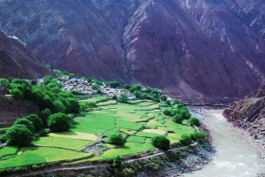 北起佛山鄉,南至燕門鄉,全長約150公里,是中國最美十大峽谷之一,也是“三江並流”世界自然遺產的核心組成部分。峽谷江面海拔2006米,左岸的梅裡雪山卡瓦格博峰海拔6740米,右岸的白馬雪山紮拉雀尼峰海拔5460米,峽谷最大高差4734米。