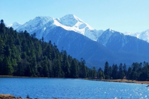 嘎朗湖位於西藏林芝市波密縣西北部,距縣城約17-19公里,地處318國道沿線,湖面面積介於1.5萬至2平方公里之間,形成於地殼運動的高原湖泊濕地。湖區四周被雪山、原始森林環繞,湖岸分佈草甸、水草與桃花林,棲息野鴨、藏香豬等野生動物。