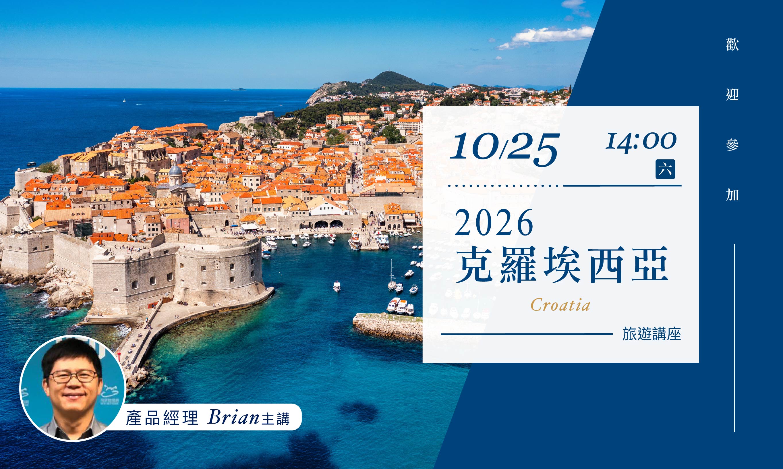 10/25(六)14:00【2026 克羅埃西亞】旅遊講座(台北場)