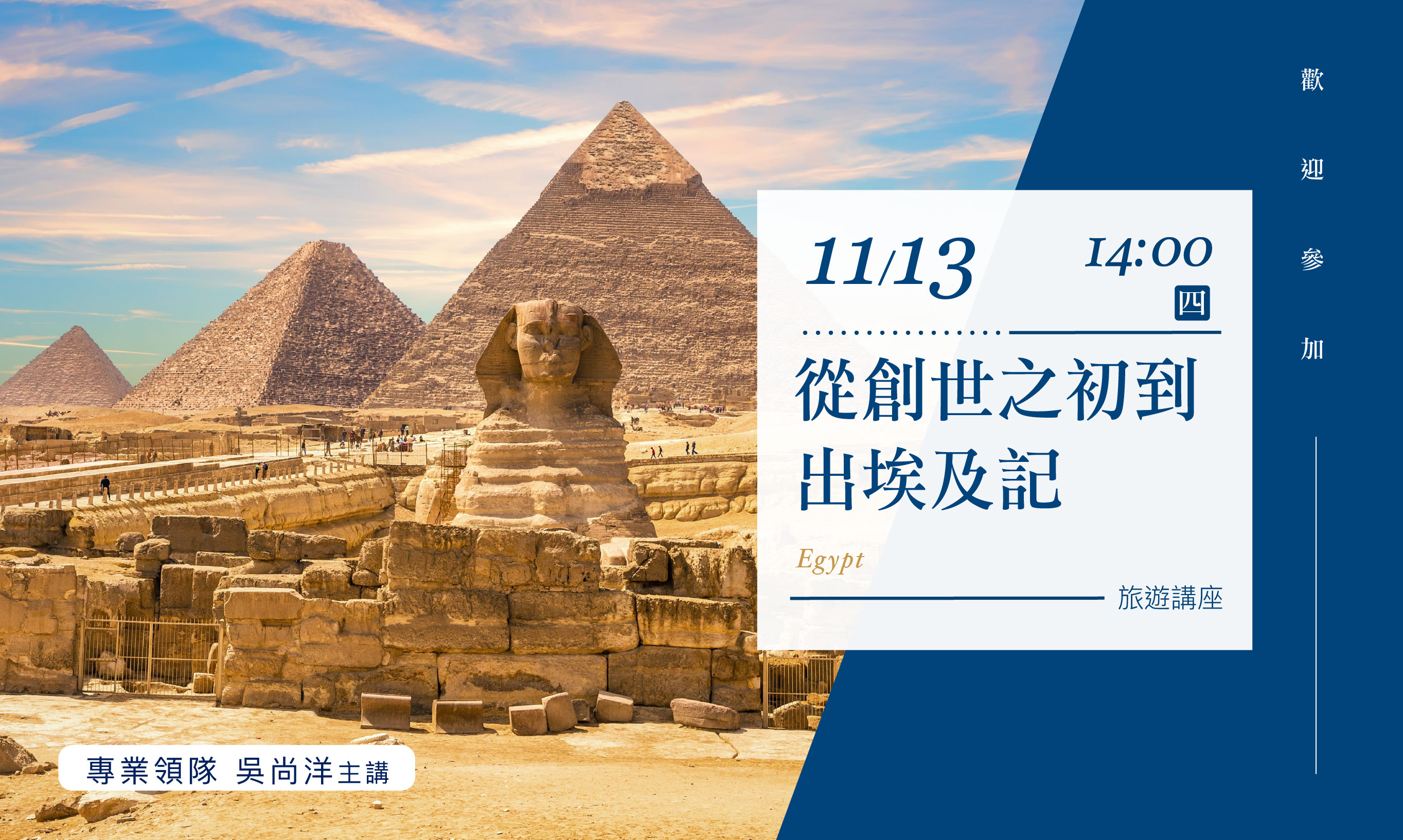 11/13(四)14:00【從創世之初到出埃及記】旅遊講座(台北場)