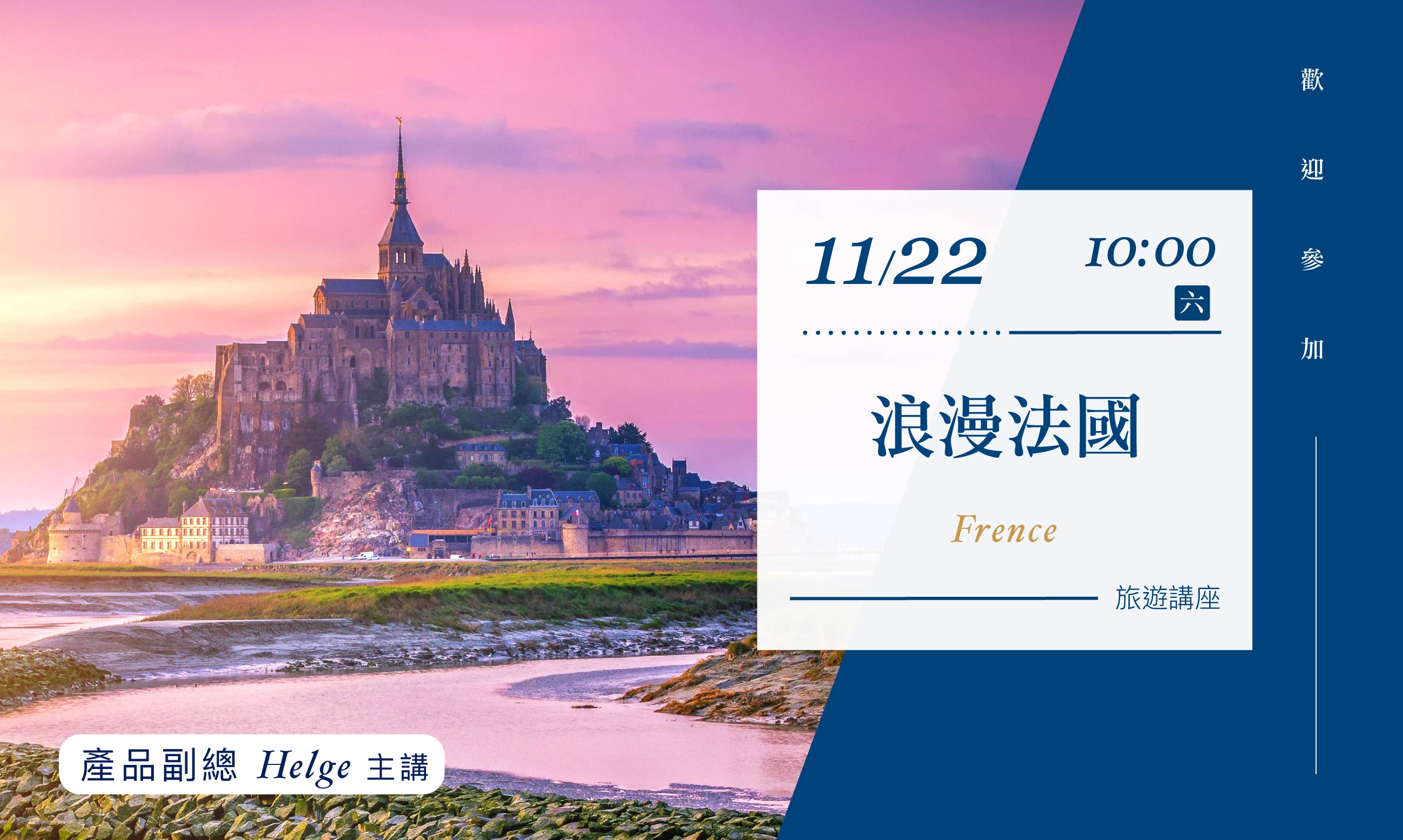 11/22(六)10:00【浪漫法國】旅遊講座(台北場)※ 本場講座因故改期至11/29。