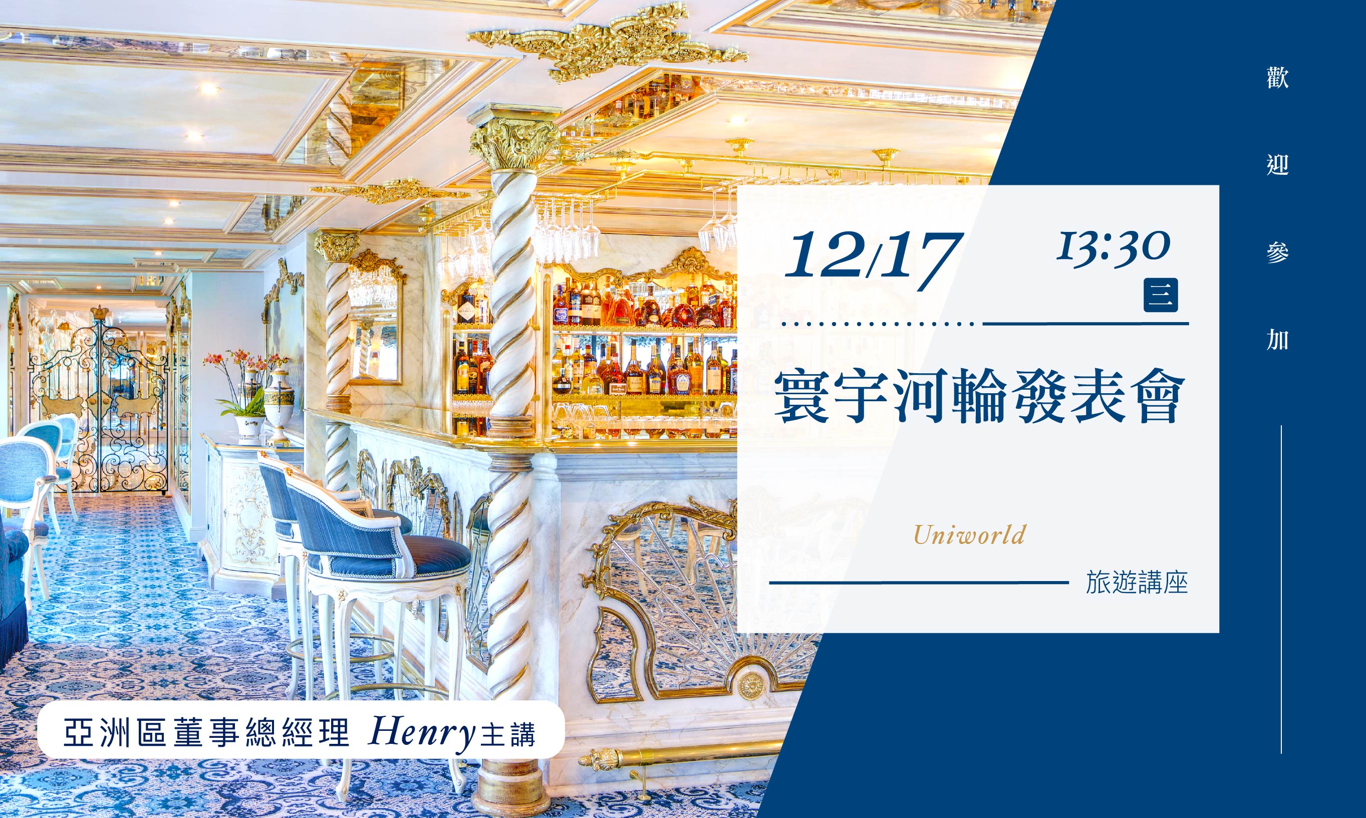 12/17(三)13:30 【UNIWORLD寰宇河輪發表會】旅遊講座A場(台北場)(JR東日本大飯店2F牡丹廳)