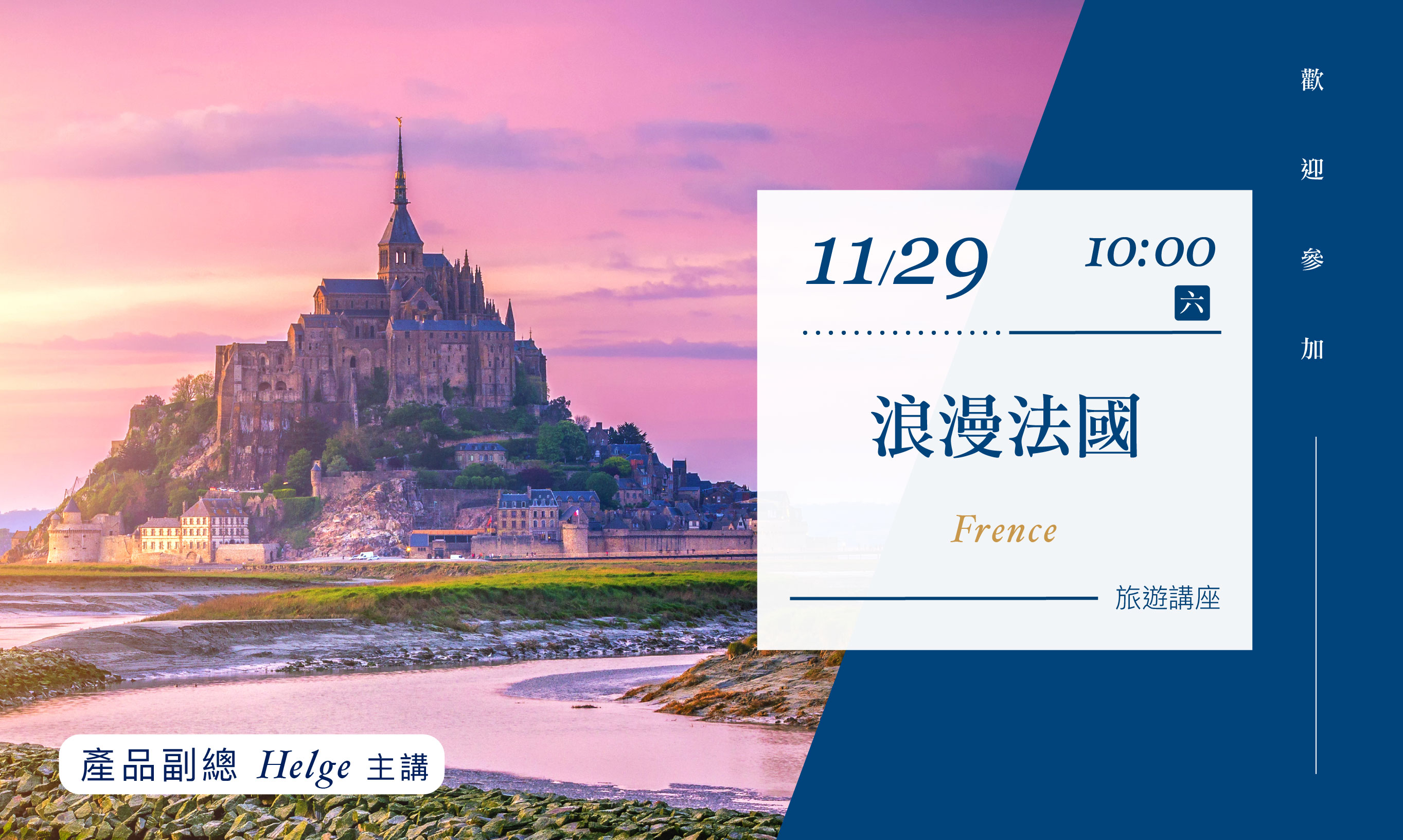 11/29(六)10:00【浪漫法國】旅遊講座(台北場)