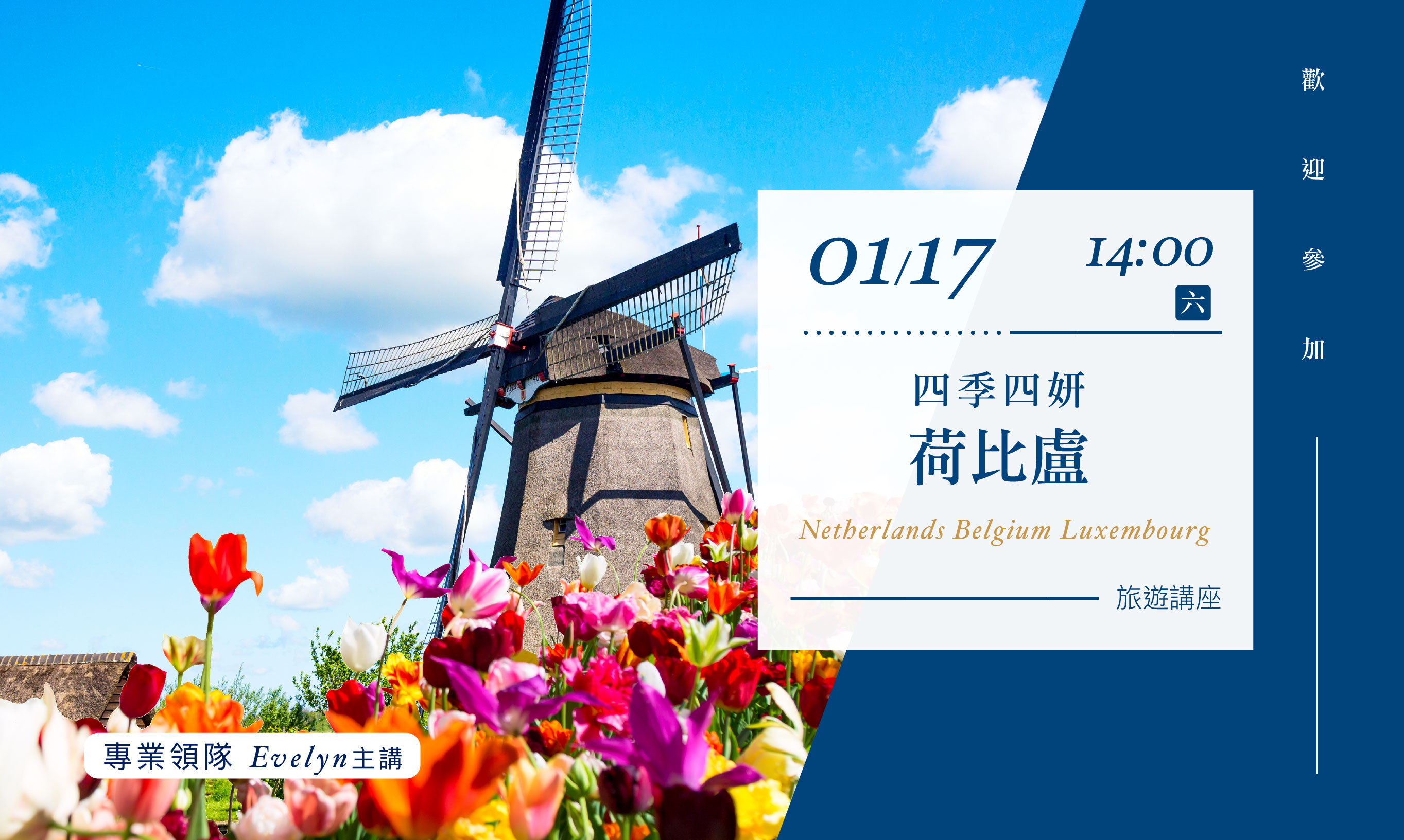 01/17(六)14:00【四季四妍.荷比盧】旅遊講座(台北場)