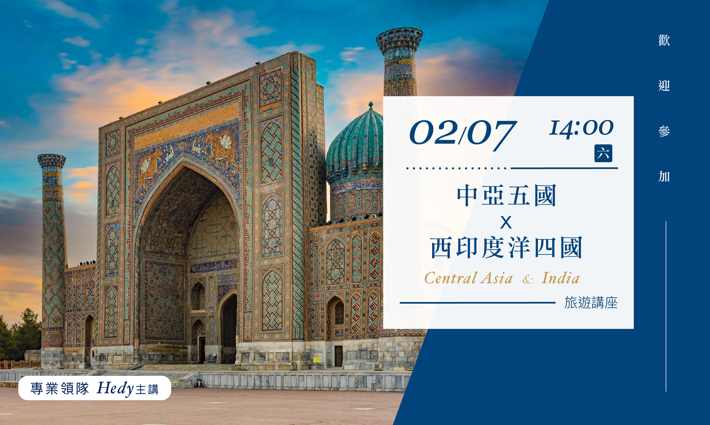 02/07(六)14:00【中亞五國x西印度洋四國】旅遊講座(台北場)