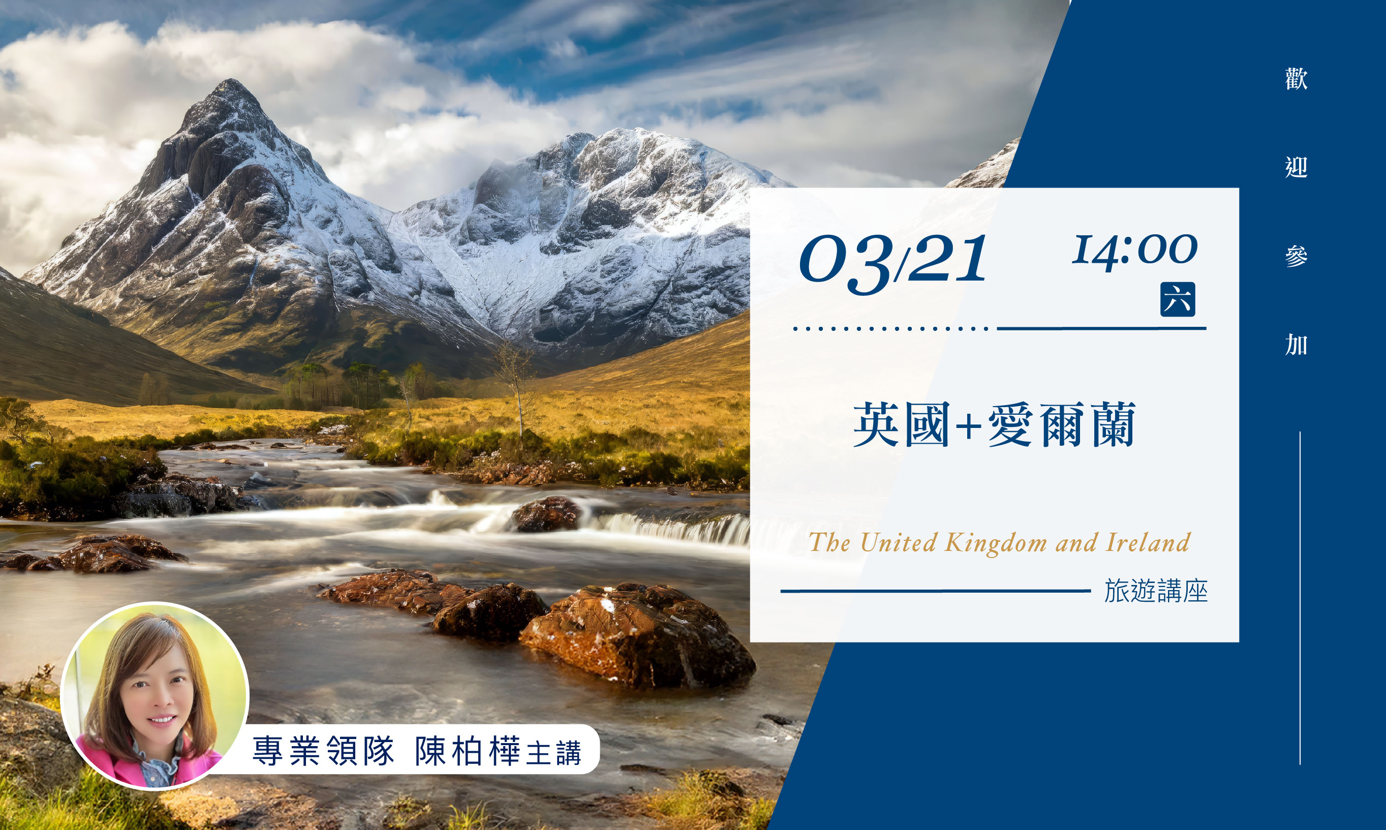03/21(六)14:00【英國+愛爾蘭】旅遊講座(台北場)