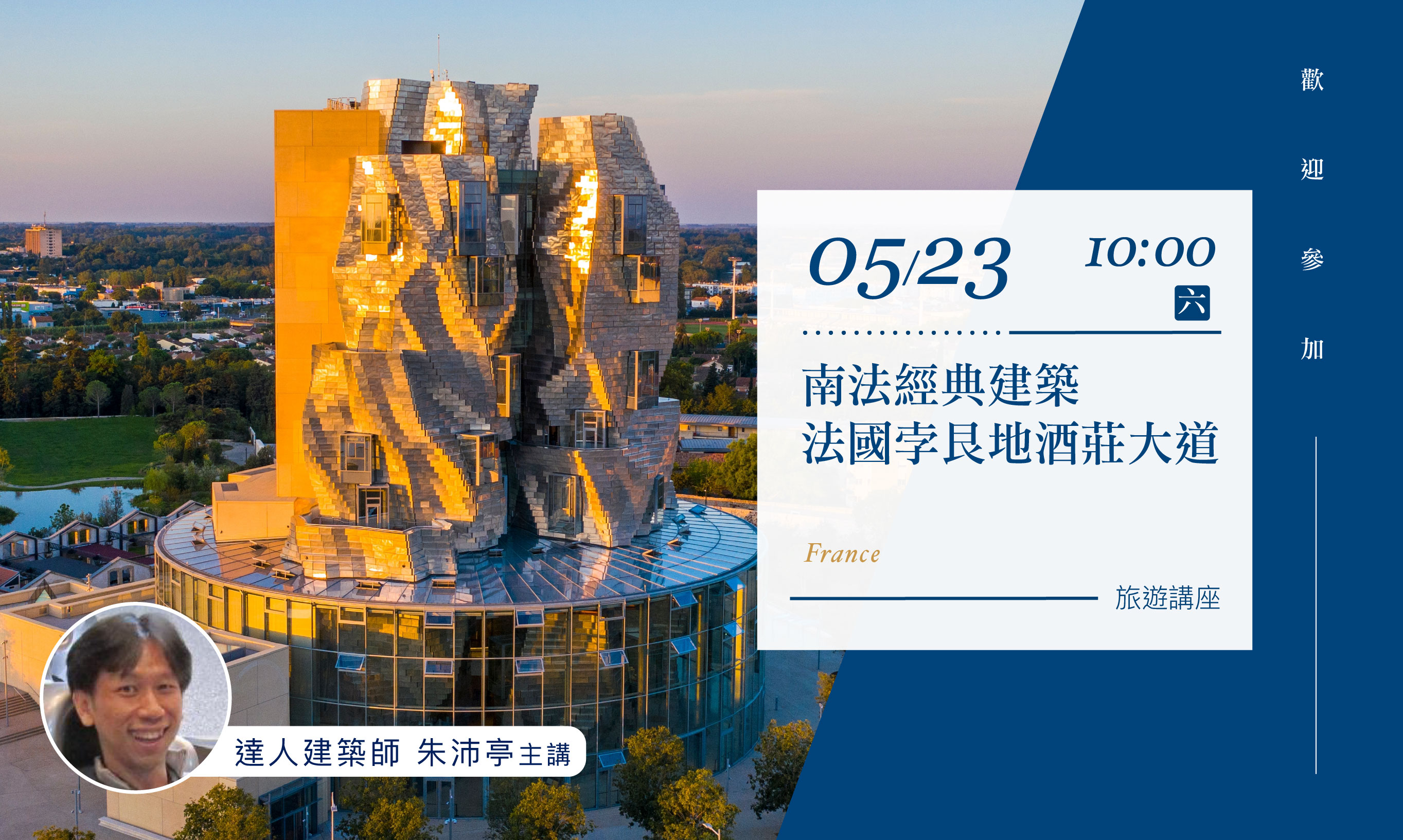 05/23(六)10:00【南法經典建築 X 法國孛艮地酒莊大道】旅遊講座(台北場)