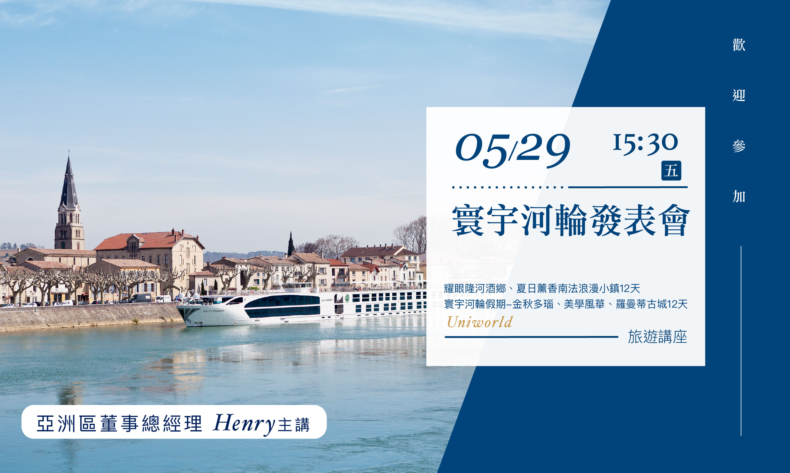 05/29(五)15:30【UNIWORLD寰宇河輪發表會】旅遊講座B場(台北場)(JR東日本大飯店3F櫻廳)