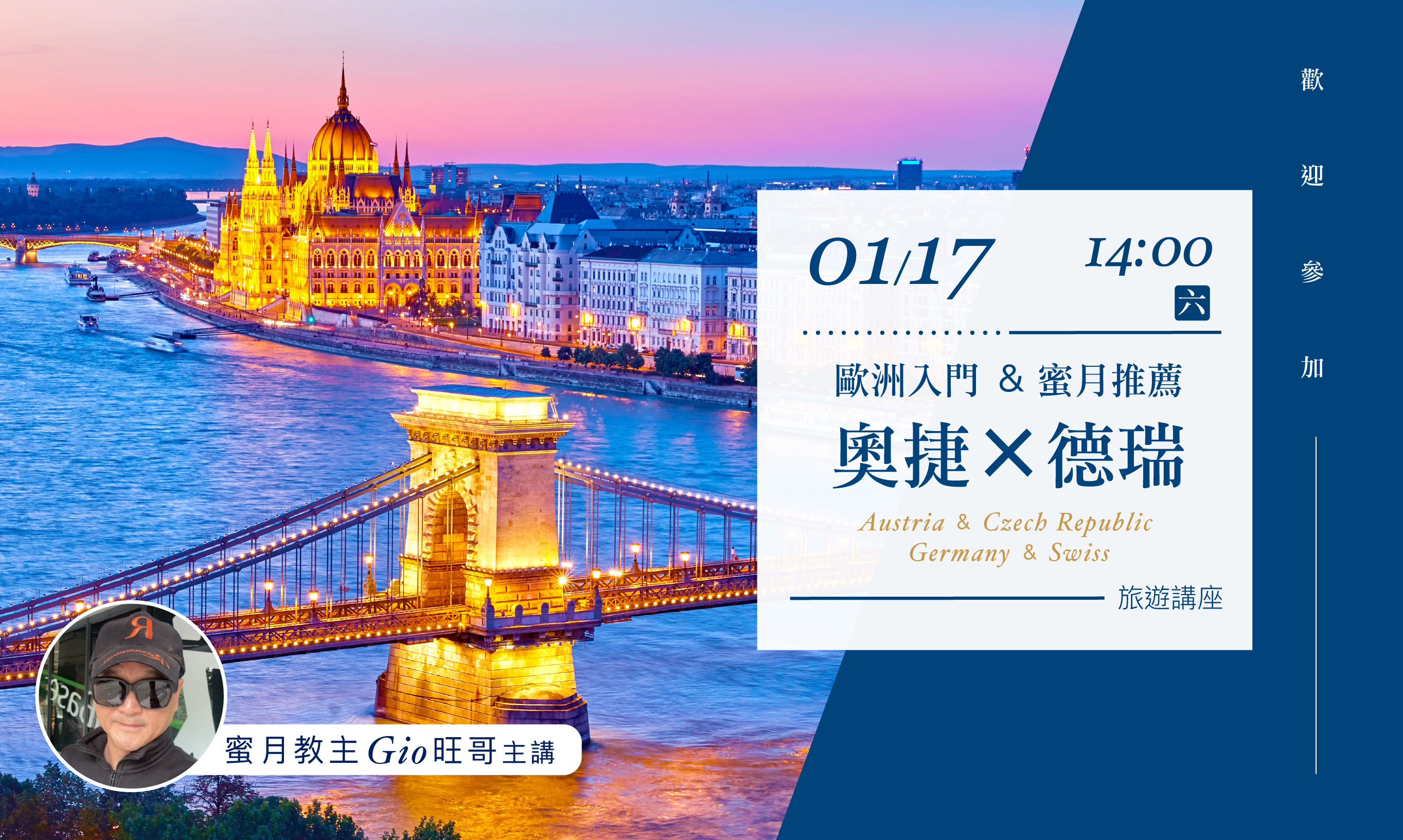 01/17(六)14:00【歐洲入門&蜜月推薦 奧捷 & 德瑞】旅遊講座(台中場)