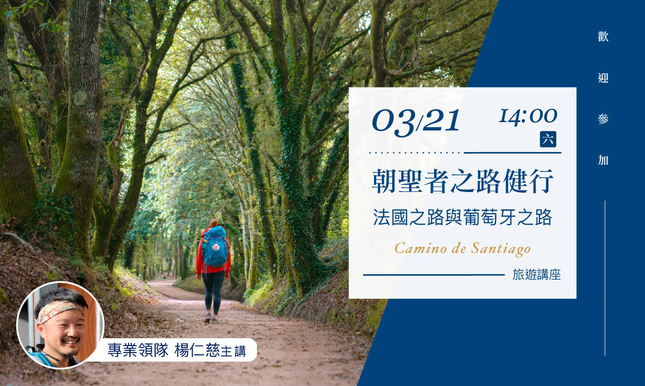 03/21(六)14:00【朝聖者之路健行-法國之路與葡萄牙之路】旅遊講座(高雄場)