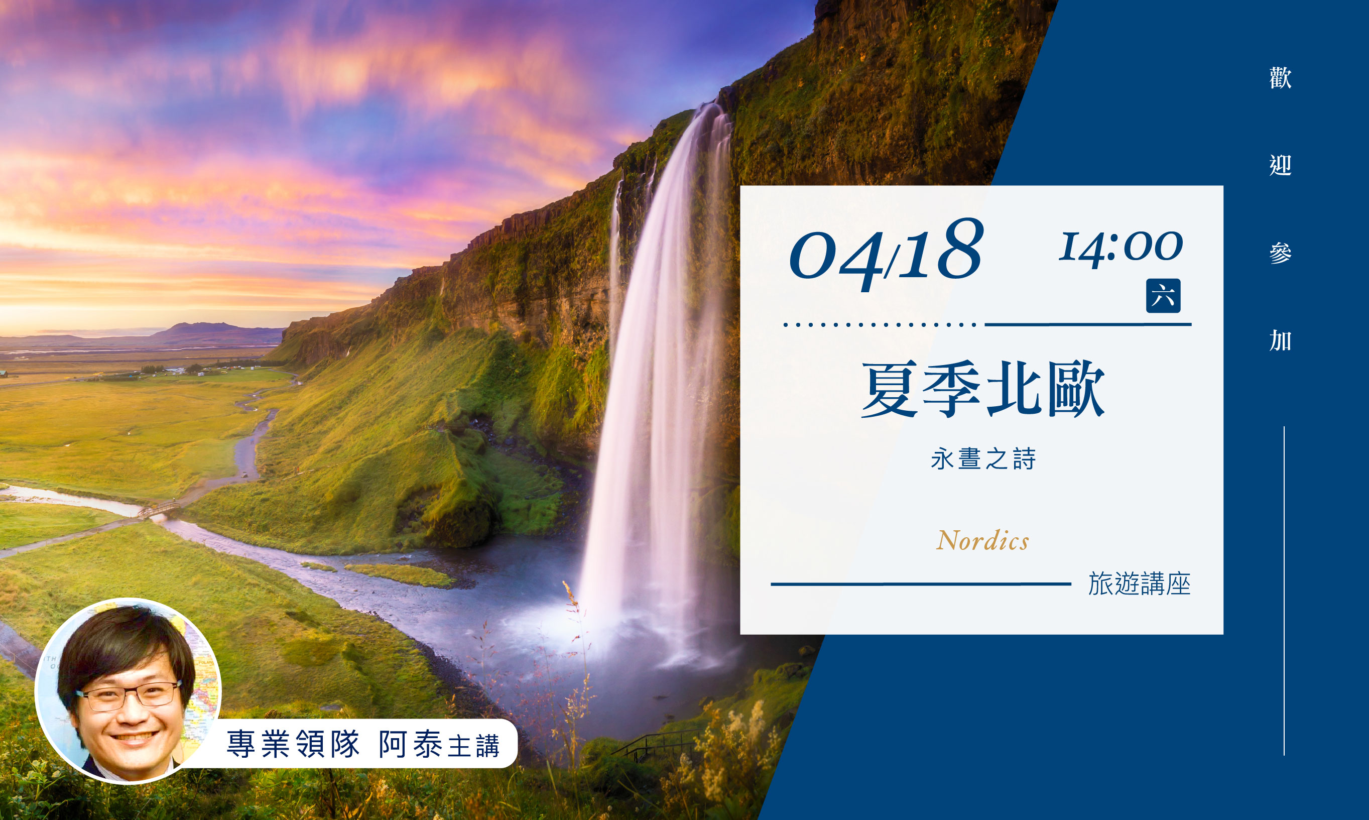 04/18(六)14:00【永晝之詩.夏季北歐】旅遊講座(高雄場)