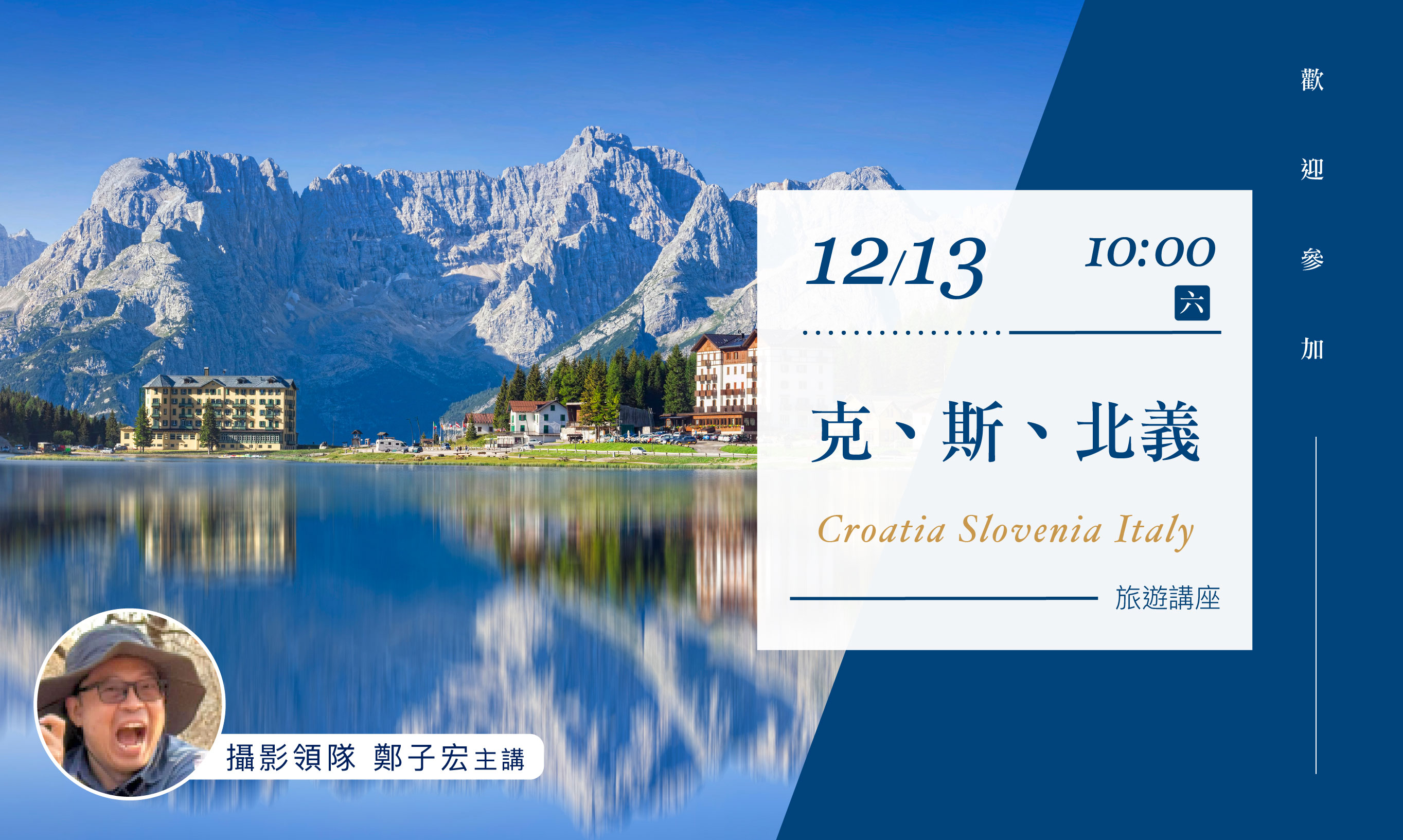 12/13(六)10:00【克、斯、北義】旅遊講座(台南場)