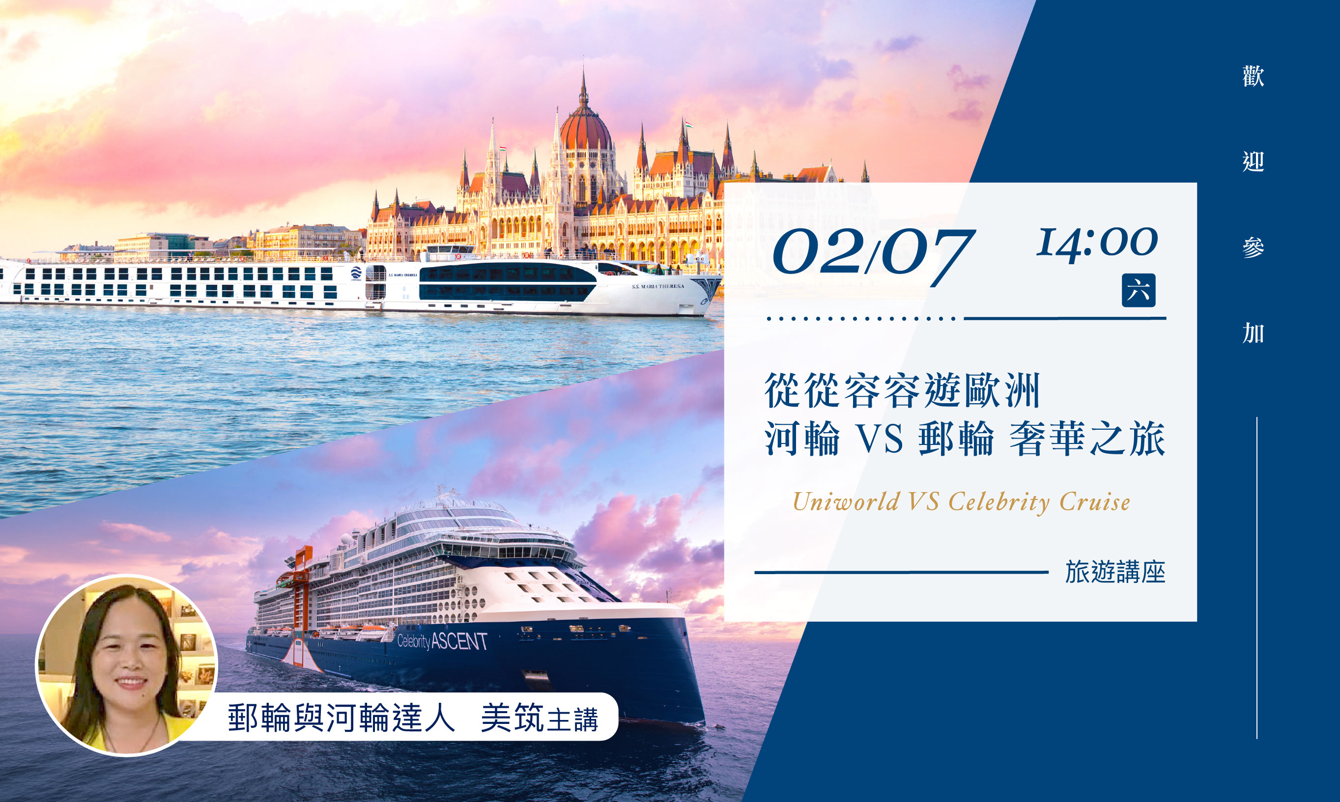 02/07(六)14:00【從從容容遊歐洲——河輪 VS 郵輪 奢華之旅】旅遊講座(台南場)