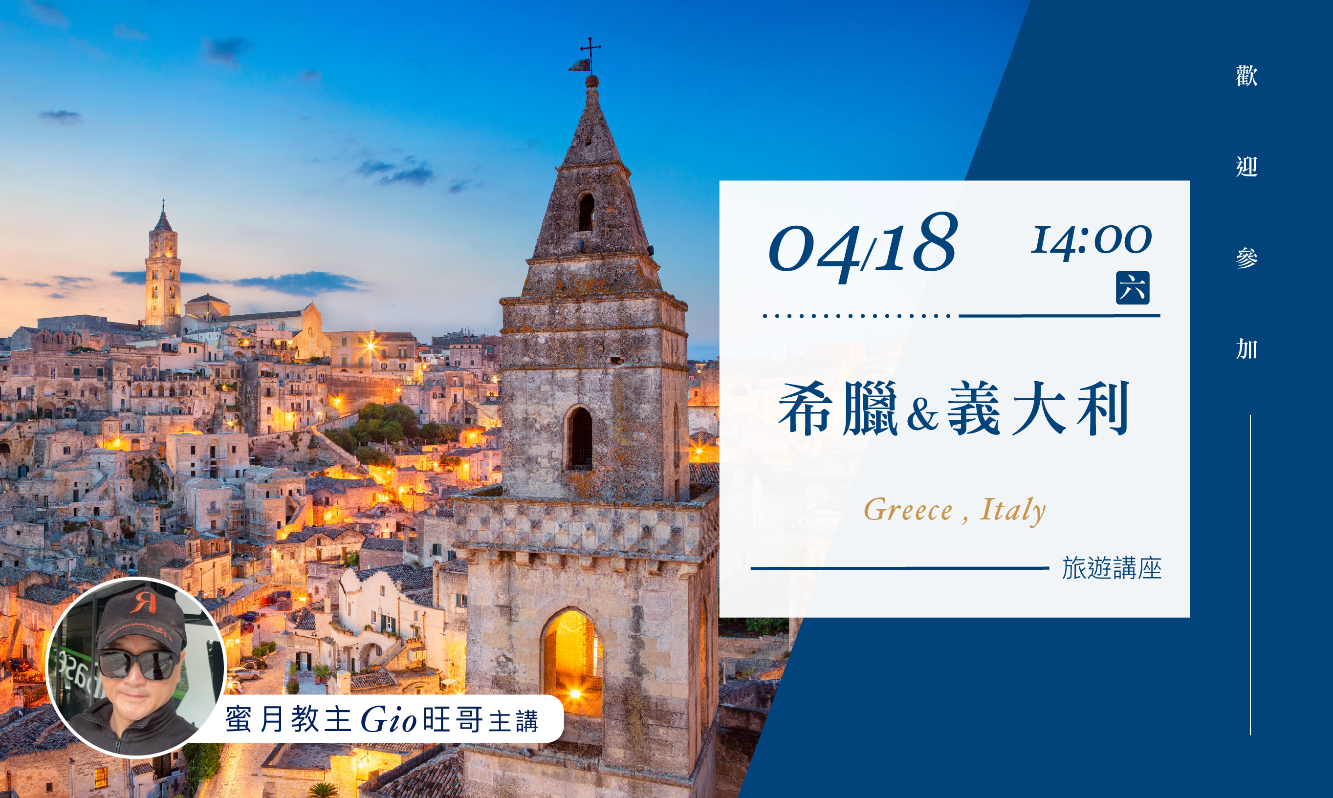 04/18(六)14:00【希臘&義大利】旅遊講座(台南場)