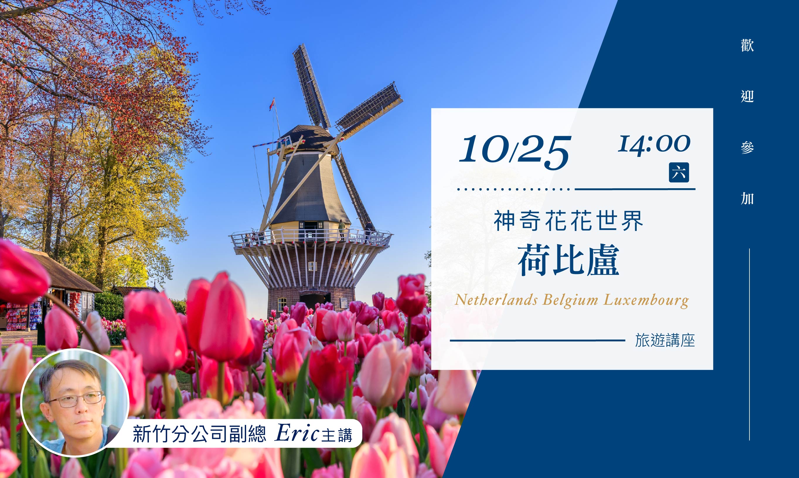 10/25(六)14:00【神奇花花世界 荷比盧】旅遊講座(新竹場)