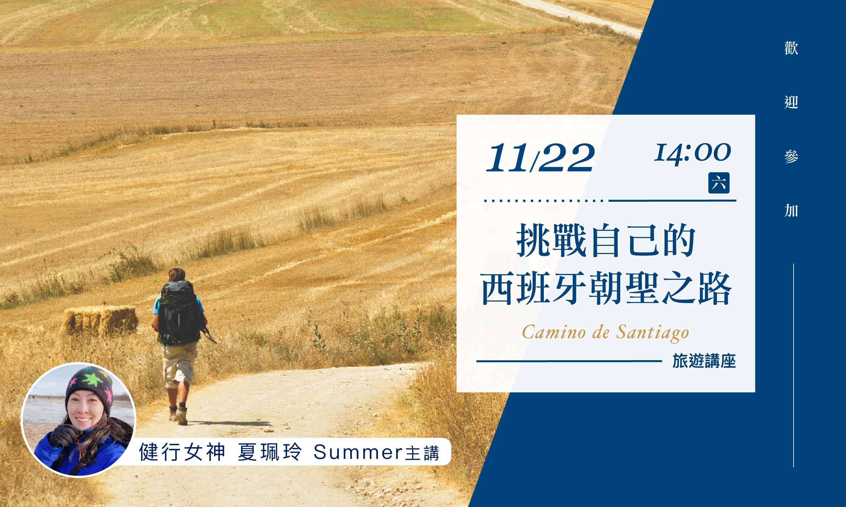 11/22(六)14:00【挑戰自己的西班牙朝聖之路】旅遊講座(新竹場)