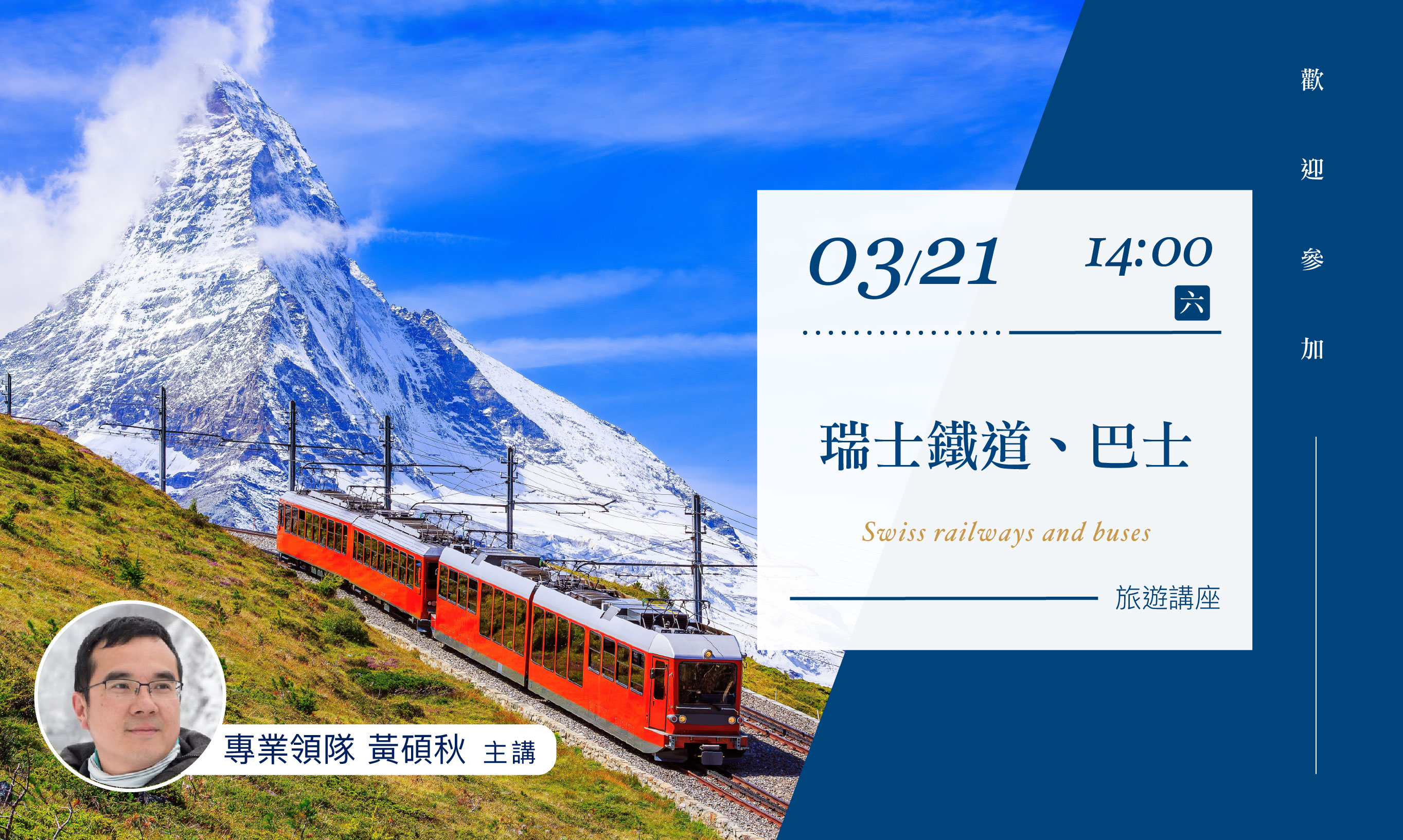 03/21(六)14:00【瑞士鐵道/巴士】旅遊講座(新竹場)