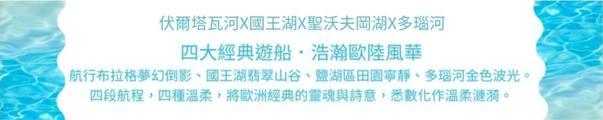 伏爾塔瓦河遊船、布拉格城堡與舊皇宮、哈修塔特天空步道、聖沃夫岡湖遊船、薩爾茲堡高堡纜車、鹽礦探險之旅、國王湖遊船、奧地利高鐵頭等艙、熊布朗皇宮、貝維帝爾宮、布達佩斯漁夫堡、多瑙河遊船、馬術村表演