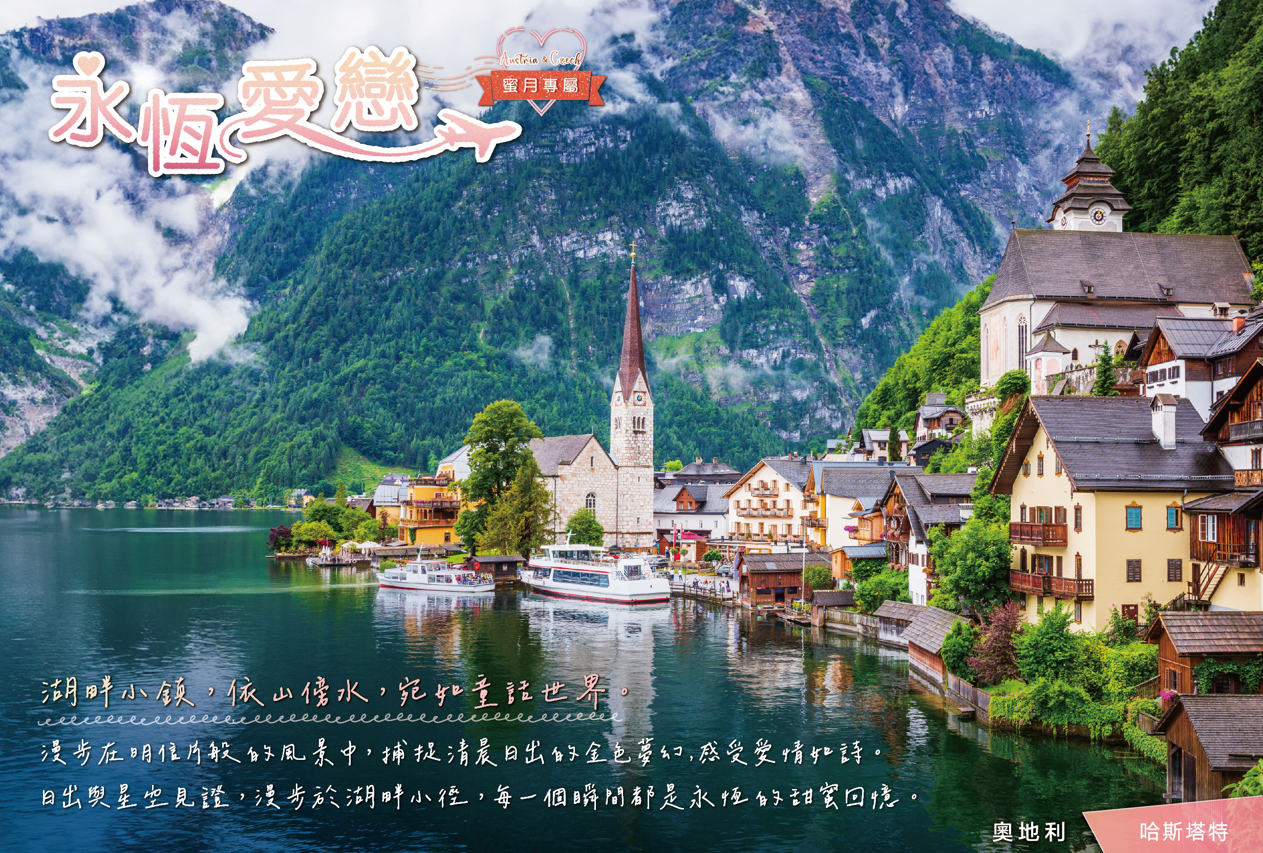 阿爾卑斯山將一則最寧靜的詩篇,寫在哈斯塔特湖的鏡面上。雲霧是它的標點,天鵝是它的詞彙。木屋與教堂的倒影,是這座仙境小鎮恆久的凝望,邀您走入畫中,聆聽山與湖的千年對白。