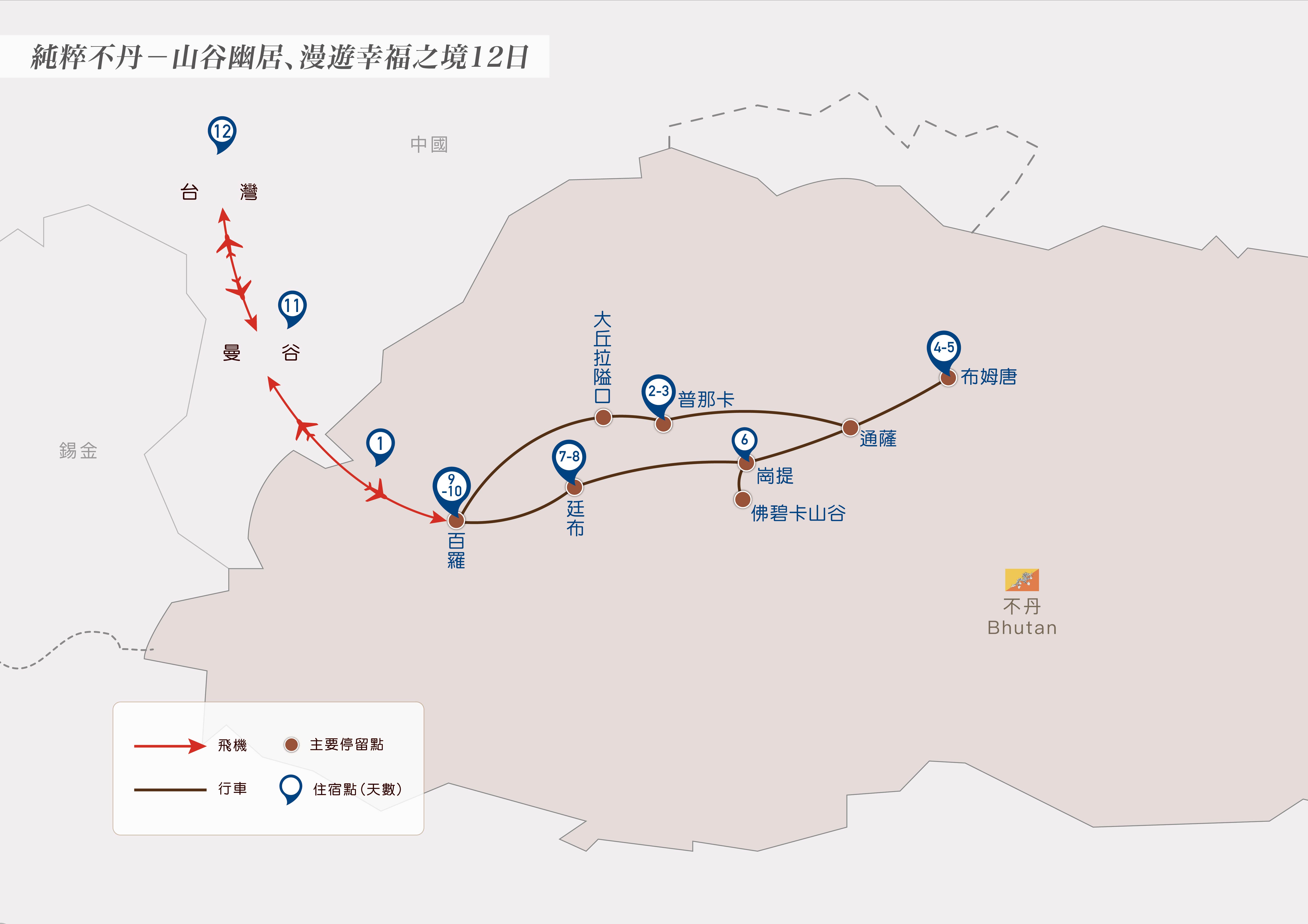 早餐:機上用餐 午餐:不丹風味料理 晚餐:不丹風味料理