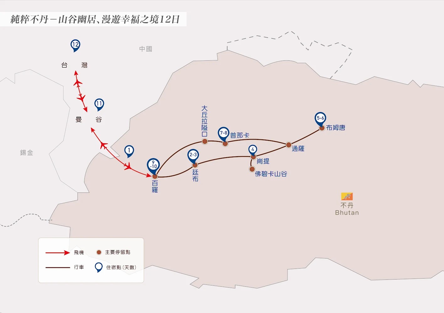 不丹位於印度與西藏間喜馬拉雅山脈中的高地國,是全世界最封閉的國家之一,濃厚的宗教色彩及長期的鎖國政策,讓不丹一直蒙著一層神秘的面紗,直到1974年政府才開始做有限度的開放。
