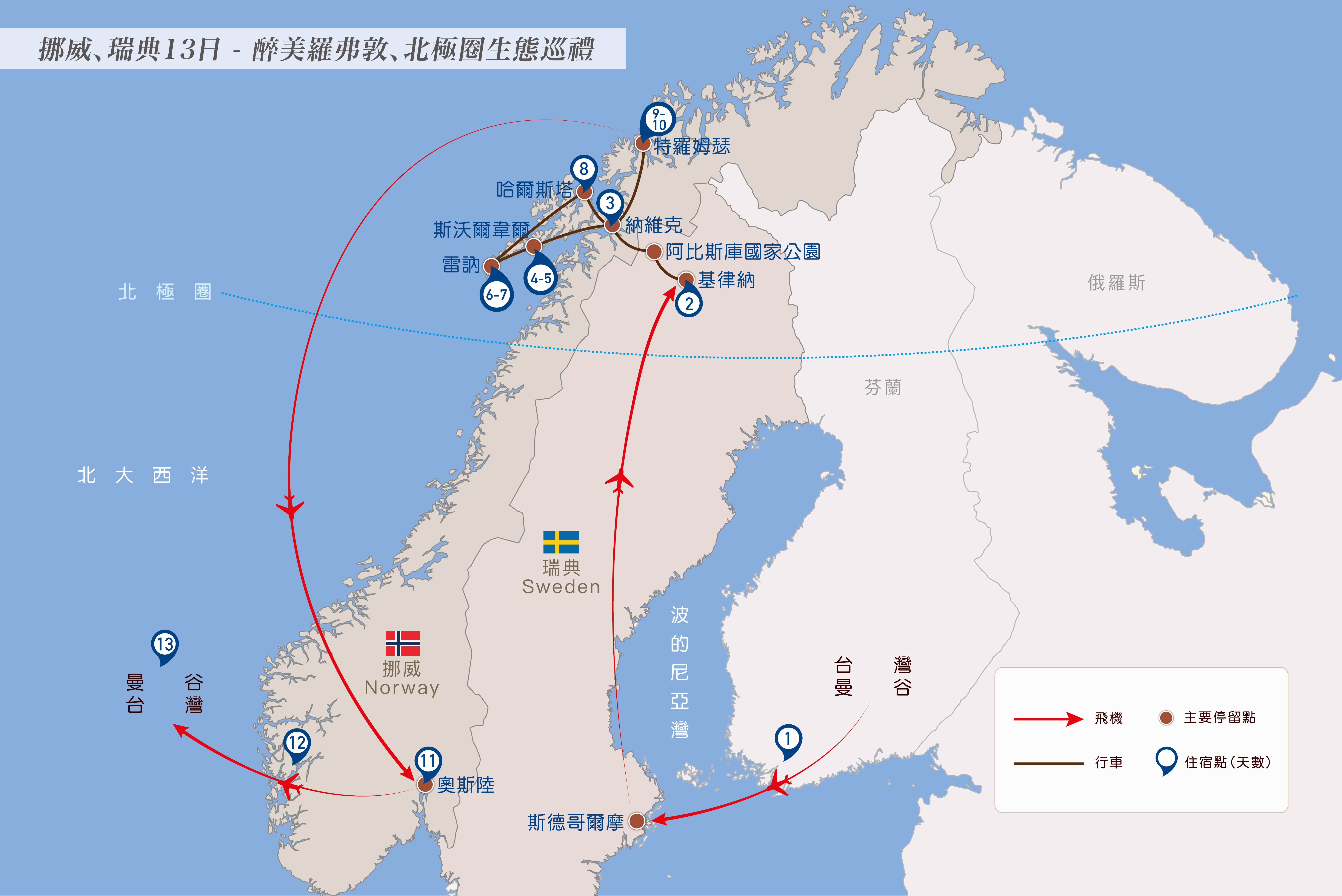 早餐:飯店用餐 午餐:路途簡餐 晚餐:北歐風味料理
