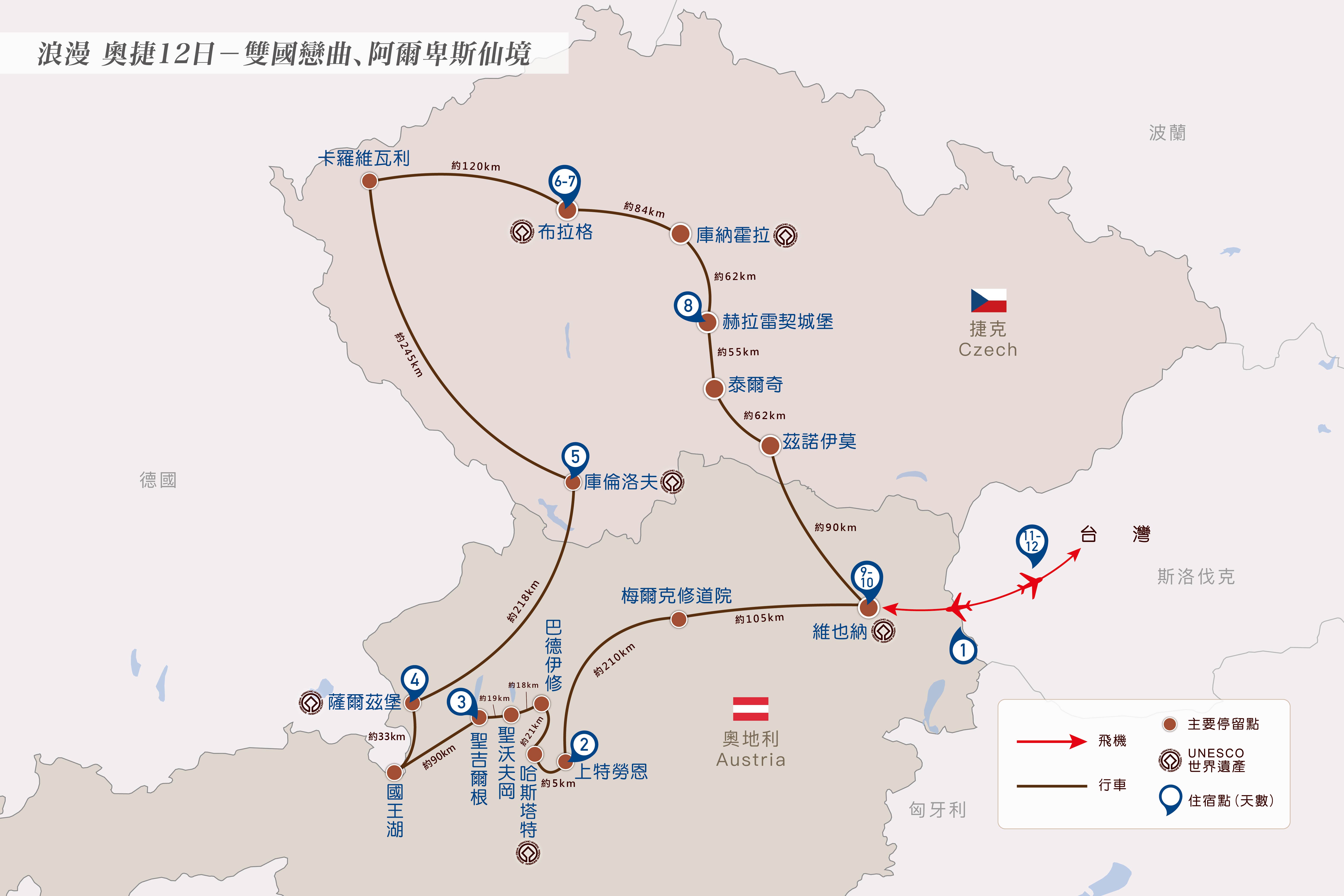 早餐:機上用餐 午餐:奧地利風味料理 晚餐:旅館主廚推薦料理