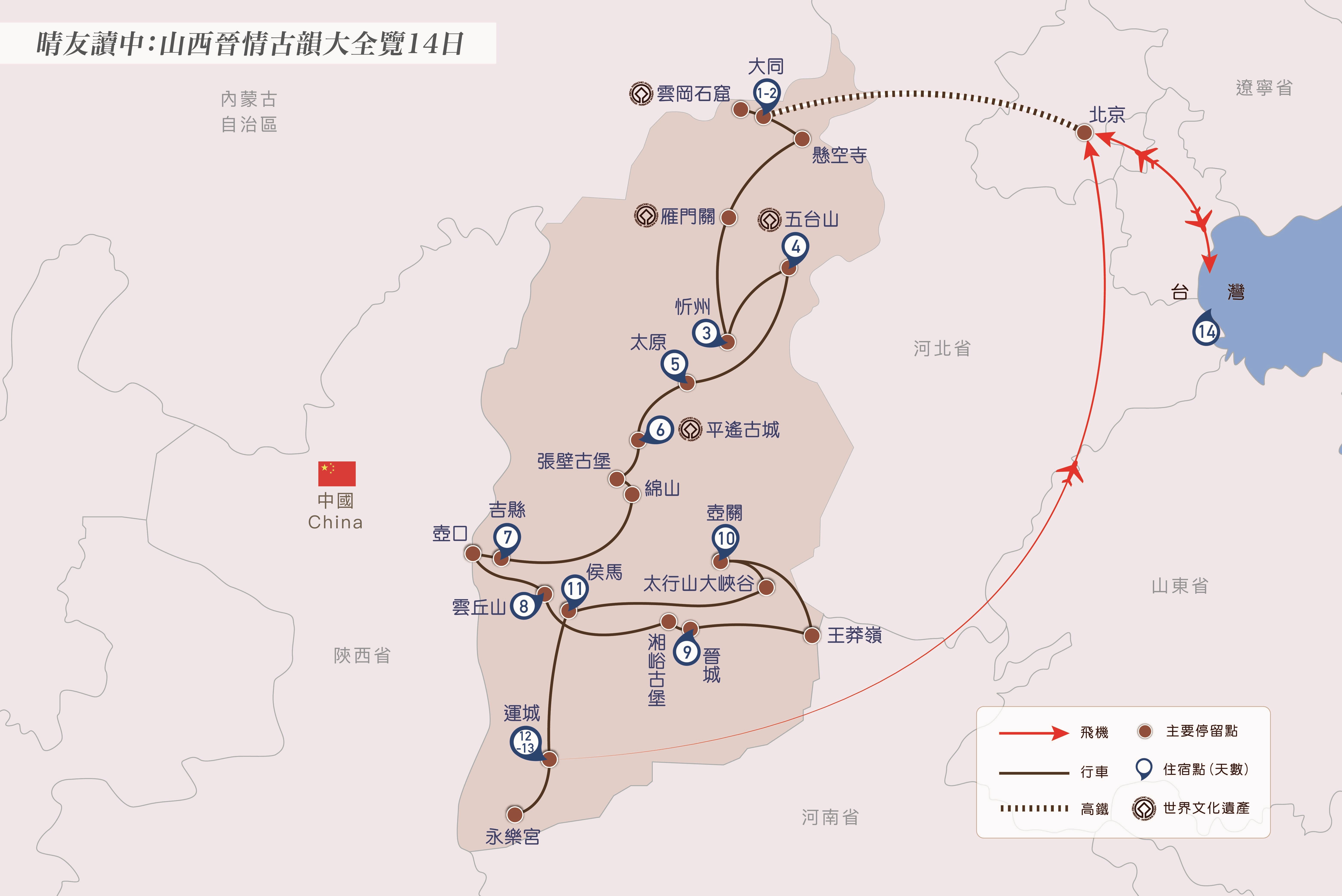 山西團如未指定菜系,整個行程走完,可能天天吃晉菜。餐廳的部分,此行程如當地有其他菜系較好的餐廳,將為貴賓安排上,不會餐餐都是山西的味道。