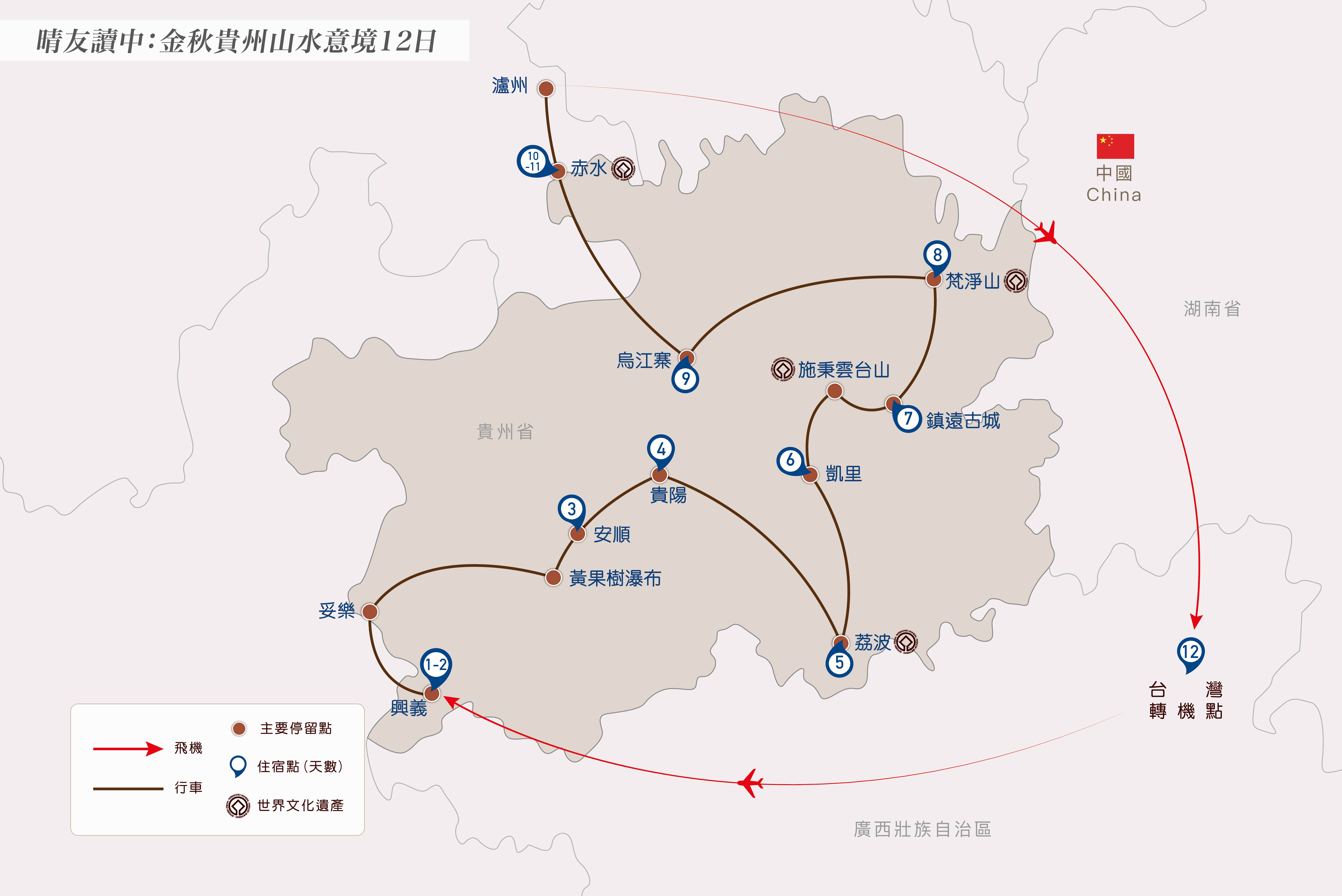 興義-91km-妥樂【古銀杏景區】-173km-黃果樹【黃果樹瀑布】-45km-安順